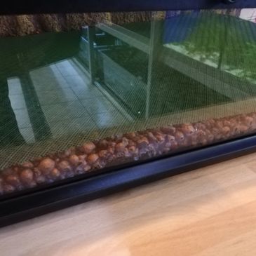 We used an Exo Terra 90 cm wide x 90 cm tall and 45 cm deep and they use every inch of the space. There is a layer of bio balls deep across the base.